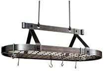 Best price Enclume PR16BWG HS Premier 3-Foot Oval Ceiling Pot Rack, Hammered Steel. Eight feet of linear storage (plus grid) and classic Old World looks will make this a showcase in your kitchen Also available without grid (which does not include 6 straight hooks) Includes two 5-inch extension hooks, 12 straight pot hooks and 6 angled pot hooks, plus drywall toggles The Enclume Oval pot rack's ageless