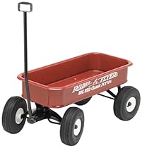 Radio Flyer 1800 Review: Radio Flyer Big Red Classic Atw. Our kids love this wagon! They can pull each other around the yard and it's next to impossible to tip over, the dog can even pull it in her harness and not tip it over! It's held up very well, we've had it for about 5 years and it's still holding strong! The only sign of wear is it got a scratch in the paint (my husband's fault) and it has rusted just a touch there, we are planning on fixing that in a few weeks to ... Read more »